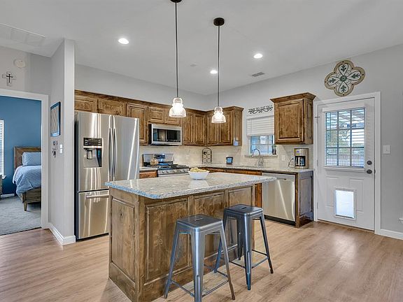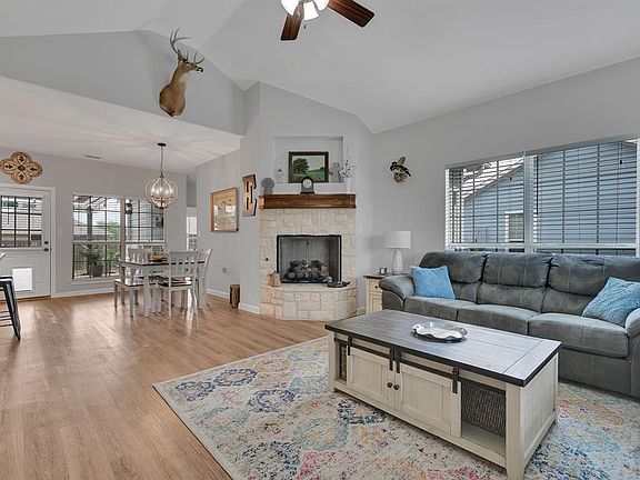 This Craftsman boasts a wonderful open floor plan with split bedrooms, covered patio & porch, large back yard, large side yard with double gate entry for boat or trailers, cable internet & natural gas! Master features a huge walk in closet & 2nd seasonal closet, separate shower, tub & dual vanities! The kitchen is a dream with SS Samsung appliances, gas cooktop, granite & island. Additional features include solid wood knotty alder cabinets, luxury vinyl plank great for children & pets, easy clean windows, decked attic for storage, oversized garage, upgraded lighting, stone fireplace with gas logs, radiant barrier, backyard storage shed, gutters & 2inch faux blinds. The perfect house to call your home!
