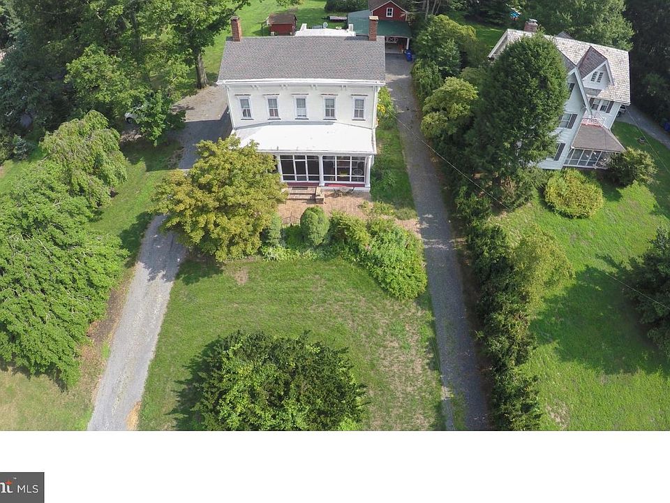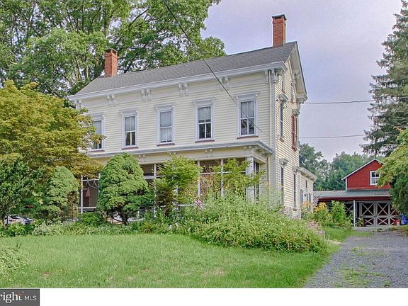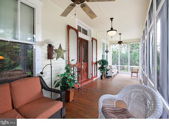 You could own a part of history, and be the 4th family to own this historic circa 1876 Crosswicks home with all the modern conveniences. It features the only screened in porch in town with ceiling fans, has over 2000' sq-ft of patio pavers surrounding three sides of the home exterior for easy maintenance. Thirteen rooms, 10' ceilings, crown moldings, big formal dining room, living room, family room with a fireplace, a ~ bath, enclosed side sun porch with heat and a/c, original tall windows throughout. Chef's kitchen amply supplied with cabinets, island, granite counters, 36" Viking six burner stove with commercial hood. Mud room back entrance adjoining the kitchen with stackable full size washer/dryer, loaded with pantry cabinets, and that's just the first floor. The 2nd floor has 5 rooms 3 or 4 bedrooms, back staircase down to the kitchen, full bath, long hallways, classic winding staircase and an extra 3rd floor finished room adjoining unfinished attic . Property has a detached two car garage with carports in front, a garden shed and another 2 car garage/barn out back with two car lean too, 1.5 acres, a sub-dividable village lot if so desired, city sewer and water with drilled deep well. Make an appointment to see for yourself.