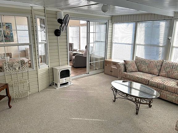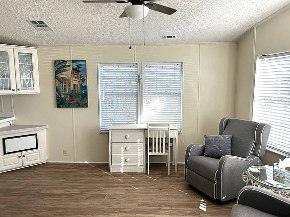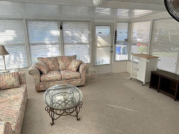 1BR 1BA 588 sq ft home plus 400 sq ft windowed and air conditioned Florida room. Partially furnished. New Laminate floors, newer appliances, extra-large golf cart shed, private patio. Large double covered driveway. Beautifully landscaped. Blink, and this one will be gone. THERE IS NO GOLF CART INCLUDED