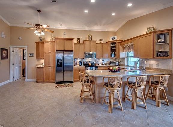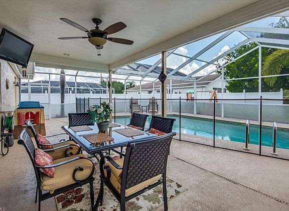 Gorgeous, Custom and one of a kind is the perfect way to explain this 3/2/2 Pool Home located in the heart of Cape Coral. This home has been meticulously maintained and updated throughout the years, I promise you won't find a kitchen like this in any home priced under $240K! Upgraded Kitchen Cabinets, Quartz Countertops, Stainless Steel Appliances, Tile backsplash, Corner Cabs with a lazy Susan, and Crown Molding make this the focal point of the home! Each Bathroom has been tastefully done with upgraded cabinets and elegant showers! The home has a great room concept with split bedrooms. The Master Bedroom is fit for a king and his queen, a Built in Desk, Dolby 7.1 Surround Sound with Projector, and still plenty of space to make it your own. One of the guest bedrooms also has built in cabinets in the closet - an option that any person would love to have! There are too many options to list - Crown Molding, Upgraded Tile Floors throughout the main living areas, Built Ins, Washer and Dryer, Under Truss Lanai, Screened In Pool Area, Upgraded Baseboard and Casing, Window Blinds, Lights, Fans, mature landscaping, concrete curbing, oversized driveway - It's got it all!
