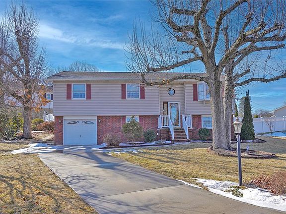 Beautiful Bi-Level offers everything you could want in your forever home! The corner lot offers attractive landscaping, a concrete drive, and beautiful brick and vinyl siding offer a substantial and attractive facade. The foyer's ceilings soar and lead to a bright, open Living-Dining space, a bay window facing front and flooding with light. The kitchen is updated and offers a thoughtful layout for ease of work in a bright space. Each bedroom is well sized and served by a lovely, spacious full bath with ceramic tile flooring, the tile covering the walls and forming a beautiful tub/shower surround. The wood vanity is attractive and offers and added tall cabinet. The hallway boasts two linen closets! A spacious sunroom with cathedral ceilings and skylights brings the outside in and overlooks the backyard with its concrete surrounded 16x32 in-ground pool ensconced in vinyl privacy fencing. The lower level provides abundant added living space beyond the built-in one car garage. A sprawling recreation room (WITH pool table and bar included), half bath with laundry facility, and an inviting family room with with corner propane fireplace sit around a central hall with convenient coat closet. A utility room provides storage space on this level. Beyond the lovely living space, thoughtful storage, and updates, you have peace of mind with an ADT Security System and a whole-home, propane fueled Generac! Do not miss this lovely home with abundant charm inside and out!