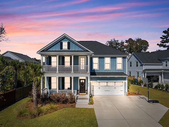 Welcome to this beautiful, well-maintained home, which has every upgrade you can imagine in the sought-after neighborhood of The Village of Stiles Point. Upon entering this home, you will be greeted with a wide entryway and beautiful, herringbone tile. This 5 bedroom, 3 bath home has an open concept feel with a grand living space with an abundance of natural light! The master suite is located on the first floor and boasts 2 walk-in closets. The master bath has modern square double vanities and a large spacious shower with 2 shower heads. The additional owner's suite is on the first floor with an en-suite full bath. This can be used as a 5th bedroom, office/study, or nursery. The gourmet kitchen offers an abundance of cabinets and an oversized island, equipped with dual oven, gas cooktop,and gorgeous tile backsplash. Upgraded quartz countertops are throughout the home. A drop zone is located off of the garage with cubbies and hooks. The large loft area on the second floor also accompanies the 3 additional spacious bedrooms along with a Jack and Jill bathroom with dual sinks and separate water closet. The secondary bedrooms all have spacious, walk-in closets. The home has crown molding throughout, windows are encased, oversized baseboards, kitchen is wired for undermount lighting, along with the tray ceiling in the master bedroom being wired for lightening. Additionally, there is recessed lighting throughout the home, a walk-in attic for additional storage, and has a utility sink in the garage. The home has in wall and ceiling Sonance surround sound speakers in the family room, plus is wired for ceiling speakers in the loft. This home is ideal for watching the sunsets on the double balcony porches! The covered patio is inviting with peaceful, pond views on this premium lot. Sidewalks line the neighborhood, where you can stroll down to the playground, basketball court, tennis courts, and the large field for the family! Jump on the golf cart or walk/bike to the grocery store, CVS and neighborhood restaurants! Best of all, it is located just under 10 minutes to Downtown and Folly Beach! Don't miss out on this amazing home in a great community!