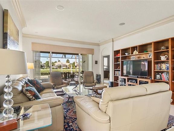 WATERFRONT, GATED COMMUNITY, GREAT ROOM and that's not all. This 3 bedroom 2.5 bath home with a den has a wonderful floor plan, great for accommodating guests or the work from home person. Spectacular views from many of the rooms not to mention the great outdoor living space. Not only is the home in pristine condition but the owners have added some very nice features. Remote controlled hurricane shutters were installed in the entire rear of the home. Also included is whole house water filtration, instant hot water, UV lighting for air purification to air handler, smart thermostat, wood flooring in den, whole wall cabinetry in den, stereo speakers in great room and lanai, pavers to large pool area, solar heat for pool, automatic solar shades on lanai, and just a couple yrs young AC. Next the chef will enjoy the kitchen with a gas stove, 4 drawer refrigerator that can be controlled as a refrigerator or a freezer, breakfast bar, and lots of cabinets. Dining room on one side and dinette on the other side making dining convenient. A door to side patio for grilling includes a natural gas hookup and a door from dinette is easy access for outdoor dining. Enjoy outdoor living in the private heated pool and spa or coffee on the lanai. it's perfect for enjoying, relaxing, entertaining, or just catching the beautiful Florida sunset overlooking the lake. Memberships are optional and a variety of memberships are available. Rosedale offers golf, tennis, fitness, dining, and lots of social activities. So don't wait to enjoy the Florida sunsets and the lifestyle this community offers! Located close to shopping, dining, and just minutes to UTC mall and the beaches. No CDD fees here. Watch the tour and walk through this home without leaving your home.