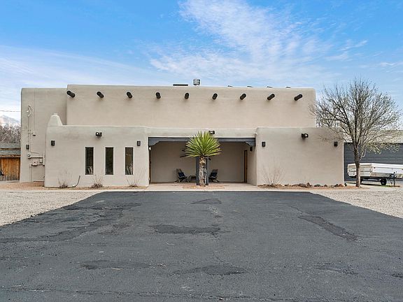 Eastside Corrales gem! This home's layout is nothing short of spectacular, designed to seamlessly blend entertainment spaces with luxurious living. Discover the allure of a wide-open floorplan, high ceilings, a striking 15-foot kitchen island, premium cabinetry, a Sub-Zero refrigerator/freezer, a chef's stove and double oven. The two-way wood burning fireplace sits at the heart of the home. Amazing mountain views from a generous viewing deck. Pass through oversized 2 car garage makes it easy to park toys and accessories vehicles. Casita is not included in the square footage. Situated on a full acre, close to amenities and a perfect blend of urban convenience and rustic living! Competitive owner financing with 20% down and 5.5% interest amortized over 30 years!