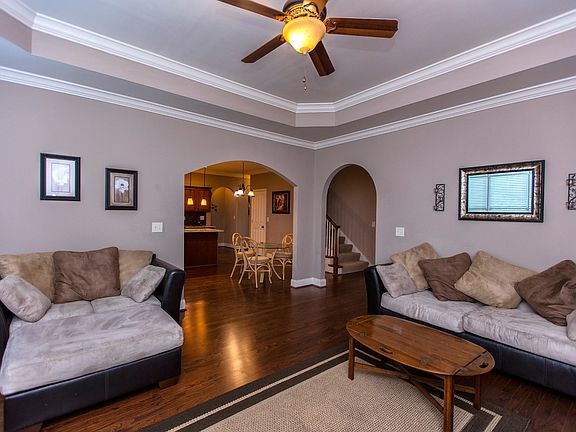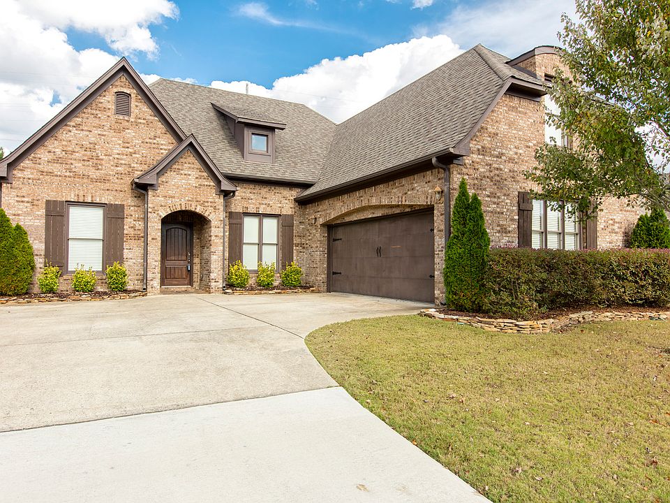 Main Level Living & HUGE flat private back yard! Dont miss this BEAUTIFUL all brick 4 bedroom and 3 full bath home in highly desired Creekside - Trace Crossings! Professional photos Tuesday! The 19+ ft high ceilings lead you down hardwoods to arched entries and a generous open floor plan complete with living room fireplace. Stylish master bedroom and master bath with jetted tub, tiled shower, separate his/her vanities, and custom walk in closet. Main level 2nd bedroom with full bath! Updated kitchen with granite counter tops, mosaic backsplash, island, walk-in pantry, and convenient entry from garage. Upstairs youll find 2 additional bedrooms and a 3rd full bath. There are also 2 walk-in attic storage areas, plus bonus attic storage in bedroom. The inviting landscaped back yard has a wood privacy fence & covered patio perfect for relaxing or entertaining. Convenient access to walking/bike trails, playground, schools, shopping and more. You dont want to miss this one!