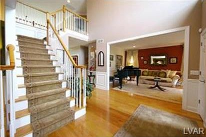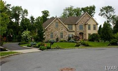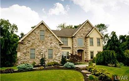 A Center Valley beauty nestled on a cul-de-sac lot in the prestigious neighborhood of Valley Green South is now available! Amenities abound in this gorgeous 4, 600 sq.ft. home beginning w/ a 2, 000 sq.ft. Award Winning Finished Basement Design featuring a pub area, kid's craft and reading room, TV area w/ gas FP highlighted by a rustic mantle and stone surround, an enormous kid's playroom, exercise room, full bath and bedroom. Expansive living space on main floor is emphasized by a voluminous 2-story family room and gourmet kitchen boasting Viking appliances, double-ovens, granite counters, ceramic tile backsplash and sizable W/I pantry. Morning room w/ vaulted ceiling provides access to the private, fenced backyard and paver patios w/ 3 retractable awnings. An impressive 12x20 office suite features a wall of built-ins and coffered ceiling. Master has sitting room and luxurious bath w/ massive W/I closet.Also, butler pantry, 2 HVAC zones, generator and O/S 3-car garage w/ shelving!Click on the VIRTUAL TOUR LINK!