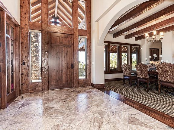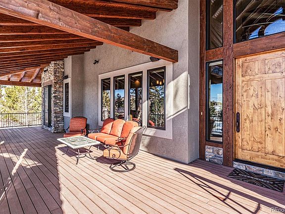 Experience true Colorado Living in this custom masterpiece located on 1.5 acres in the Timbers Neighborhood. A classic Colorado Mountain Contemporary Executive Home in the forest. The home is perfectly situated at the end of a long driveway to maximize privacy & capture the Colorado Mountain views. The grand entry leads directly into the towering 2 story family room and the double island kitchen. The 2nd kitchen island is perfect for your caterer to setup for large parties or small gatherings. The kitchen of course has a professional hood vent with gas cooktop and the expected professional appliances. The main floor has a dining room, study and breakfast room fit for a king. The upstairs has the master suite with heated master bath floors and a closet that has a perfect spot for everything. Notice the views from the shower! The basement has a rec room, full bar, wine room, billiards room, media rm that seats 8, full guest suite and a shower that is ready for steam. Your eye will never be without a view of the mountains or the surrounding natural beauty.