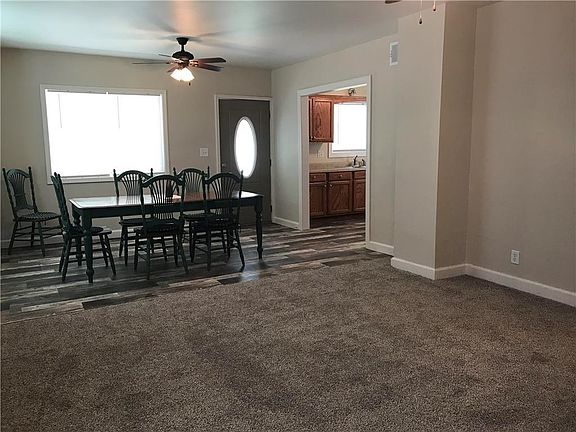 Cute, updated home with great view and spacious yard. This reverse 1.5 story home has a nice open living room, dining, and fully equipped kitchen with newer cabinets with soft close drawers and doors. There is a main floor bedroom and full bath plus downstairs you will find a family room with walk-out door to patio area, 2 additional bedrooms, and 3/4 bath with laundry. Newer paint, flooring, electrical box, and lighting throughout. Vinyl sided exterior and replacement windows. (Some work still in process.)