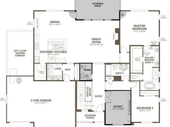 **!!AVAILABLE NOW/MOVE IN READY!!**SPECIAL FINANCING AVAILABLE** This Melody is waiting to impress with the convenience of its ranch-style layout along with designer finishes throughout. The main floor offers a study and a generous secondary bedroom with a shared bath. The open layout leads you to the back of the home where a beautiful gourmet kitchen awaits and features a quartz center island, walk-in pantry and stainless steel appliances. Beyond, the open dining room flows into the welcoming great room with a fireplace and doors that open into the large covered patio. The nearby primary suite showcases a spacious walk-in closet and a private deluxe bath. A convenient laundry and mud room complete the main level. If that wasn’t enough, this exceptional home includes a finished basement that boasts a wide-open, versatile rec room with a stunning wet bar along with two basement bedrooms that have walk-in closets and a shared bath.