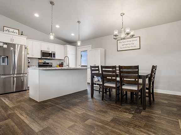 Welcome Home! This beautiful 2160 sq/ft, 3 bedroom, 3 bath home was built in 2021 and offers luxury living at an affordable price. From the vaulted ceilings to the finished basement, you will love the fit and finish of this home! Upon entering the home, you're welcomed by an open concept layout upstairs featuring a well appointed kitchen, Master Bedroom w/ en suite, a second bedroom and bathroom and main level laundry. The basement offers a spacious family room, an additional bedroom and a killer wet-bar! With its over-sized 2 car garage and fenced backyard, this home is perfect for car and pet enthusiasts alike! Sitting in a desirable neighborhood, this home offers quick access to Ellsworth AFB as well as downtown shopping, parks and hiking trails within a few minutes of leaving your front door.
