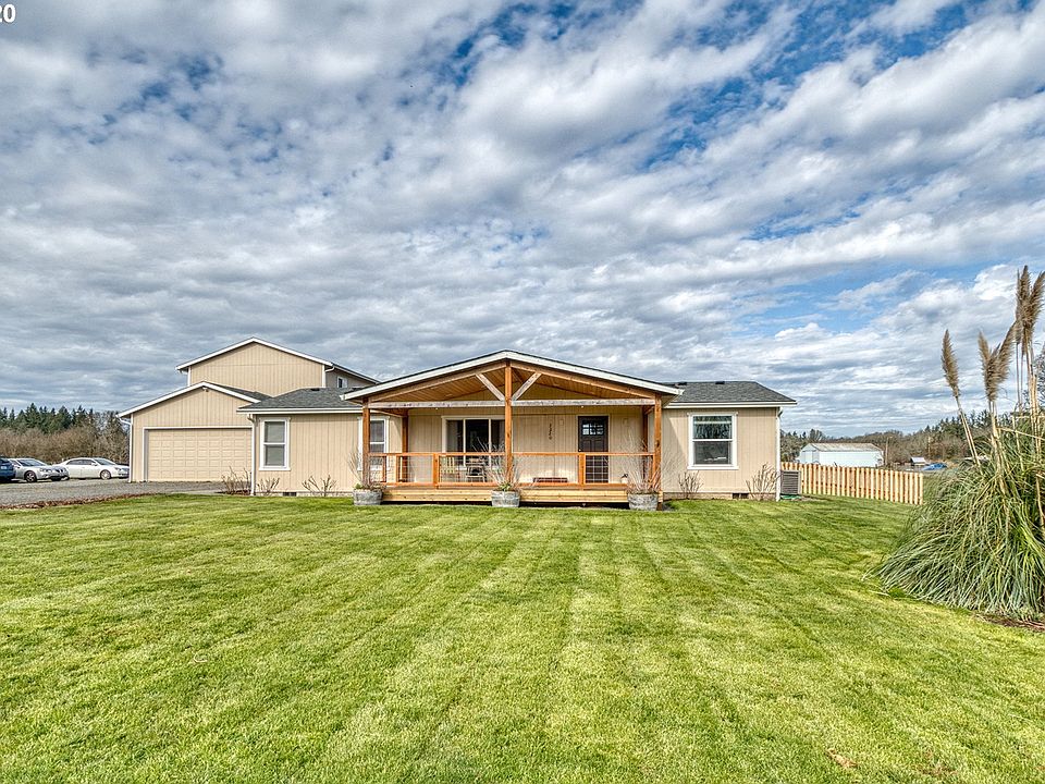 Beautiful country living! Manufactured home on 2 acres w/ fully fenced garden! Remodeled in 2017. Roof 3 years old. Newer heat pump unit.Newer kitchen appliances w/ lower dBA dishwasher & double electric oven unit. Detached garage, 2 car extra deep, 3rd garage bay on backside of garage w/ additional apartment unit above garage w/ bedroom, living room, kitchen, bath & laundry. Potential for horse property w/ barn! Gorgeous property for entertaining with huge covered deck & covered patio!