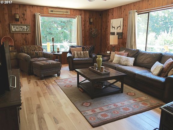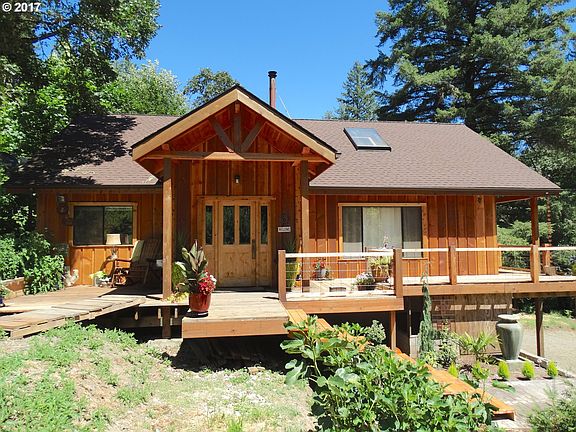 This gorgeous lodge style home located on 23 whimsical acres has it's own pond, fruit trees, grapes, nature trails, shop and dirt bike track. Located on 2 tax lots. The lower level includes oversized two car garage and basement/storage/ laundry. Main Level consists of kitchen, dining, 2 beds/1 bath. Upper level, incredible master suite and 3rd bed. Tons of character throughout this one of a kind home.