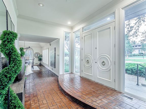 Surrounded by tall trees on a park-like one acre lot, this luxurious pier & beam home boasts dramatic 11' ceilings & generous room sizes. The appealing French influence offers versatility w potential to transition to a more modern style as desired. Calcutta marble counters, hand scraped wood floors, furniture style white cabinets & SS appliances line the gourmet kitchen, & all 6 baths have been remodeled. A stunning floor to ceiling white marble stone FP is the focal point of the home. French Brown brick floors & wood floors, & large double pane windows w plantation shutters are in most rooms. All 5 bedrooms are spacious w extra large walk-in closets. Tall trees shade the party size pool & large grassy back yd.