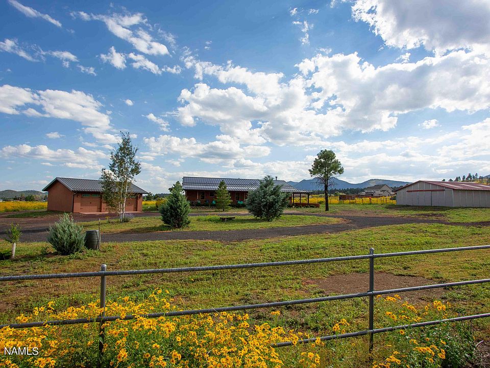Luxury horse property with 3-stall barn w/tack room that can be expanded to 5-stall, fully fenced pasture, forest access, 2 covered stalls & riding pen. Panoramic views of the San Fransisco Peaks, take scenic hikes or trail rides on one of the many trails or ATV @ Cinder Hills just minutes away. Gorgeous home on 5.66 acres w/ an add'l 5.03 acres available. Discount if purchased together: APN 30151004k MLS# 196026. This is rare in Northern AZ! New metal roof was installed w/no maintenance & offers longevity of life. Detached 3-car garage, large enough for a long bed crew cab truck & offers heated workspace/hobby room & RV parking. Kitchen showcases concrete countertops, under cabinet lighting & professional appliances. Ed Dunn Straw bale home. Buyer credit for water hookup. See it TODAY!