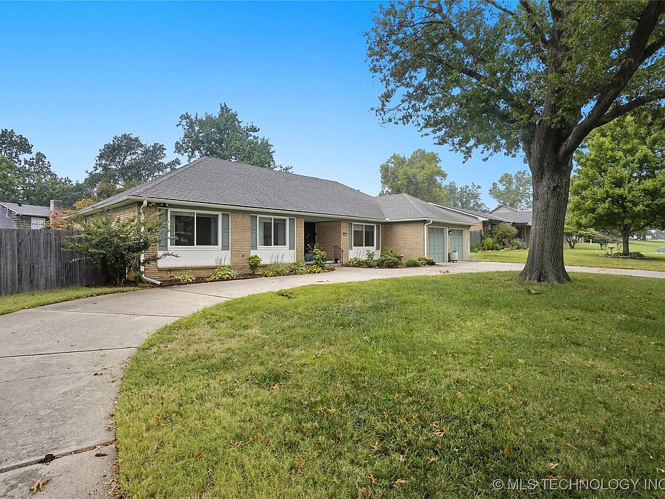 Welcome to this well maintained full brick, one-story home that combines comfort, functionality and style. Move-in ready and thoughtfully updated, the home features a circular driveway offering both curb appeal and convenience and is situated on a generously sized lot with mature trees and a fully fenced backyard. The heart of the home is the fully renovated eat-in marble kitchen, complete with modern finishes, custom cabinetry, wine fridge, ample storage and a seamless connection to the formal dining, light and bright living room and family room with fireplace flanked by built-in bookcases. The home boasts engineered wood floors throughout the living areas and three spacious bedrooms, including a private primary suite with updated ensuite bathroom, oversized utility room that offers exceptional storage and functionality, AND an added bonus of a screened-in back porch overlooking the parklike backyard, perfect for gatherings or simply and conveniently enjoying the outdoors. This home offers all the space and features you've been searching for on one convenient level!
