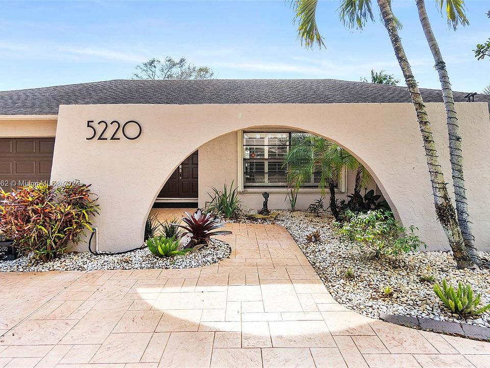 Plantation Harbor: A unique four bedroom winged ranch with a private master bedroom suite, featuring a walk-in closet and spacious glass shower with private pool access. French doors in the family room open to the backyard, pool and patio. Two separate living spaces with plantation shutters flood the home with natural light. The updated kitchen has a full pantry, breakfast peninsula and beautiful granite countertops. The second wing of the house features three bedrooms and updated bathroom with tub/shower combination. The largest bedroom in the guest wing has direct access to the pool and patio. The garage is updated with epoxy floor finish. New driveway, landscaping 2020-2021. Within walking distance of Plantation South High School and Heritage Park.
