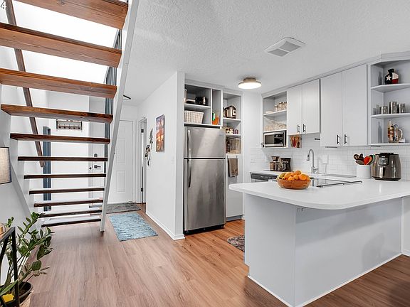 Nestled in the vibrant & highly sought-after Hayhurst neighborhood, this beautifully updated 2-bedroom, 1-bath townhouse style condo is a hidden gem waiting to be discovered. Located just a stone’s throw away from Gabriel Park, the SW Community Center, Vermont Hills Community Garden, and the charming Multnomah Village, this home offers the perfect blend of convenience, style, and serenity.Step inside, and you’ll instantly feel the warmth and sophistication that this home exudes. The open concept living area, with its sleek LVP floors and striking open staircase, invites you in with a sense of light and airiness. The living room, bathed in natural light from the large windows, offers stunning tree-top views that create a tranquil, almost treehouse-like ambiance. The heart of the home, the kitchen, is updated with modern quartz countertops, ample cabinetry, SS appliances, eat-in bar, and custom tile backsplash.As you make your way upstairs, you’ll be greeted by a skylight that fills the space with sunshine, leading you to the two spacious bedrooms. The primary bedroom offers double closets, LVP flooring and a bonus/flex space that can be used as a 2nd living space or office. The bathroom has been tastefully updated.But the updates don’t stop there—the entire home has been painted in modern, soothing colors, making it feel brand new and ready for you to move in and make it your own. Whether you’re looking to add to your investment portfolio (with an unmet rental cap, buyer to verify) or seeking a long-term home that checks all the boxes, this home has you covered.Don’t miss your chance to own this, swanky abode in one of Portland’s most popular neighborhoods. With parks, schools, trails, shopping, restaurants, minutes to downtown and more, your new lifestyle awaits! HOA fee cover, Water, Sewer, Trash, Commons, Landscaping, Ext.Maintenance, Management, Community room w/ weights/treadmill,outdoor space w/ picnic table garden boxes. Deeded Parking Space #20 & Storage Unit