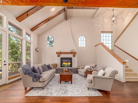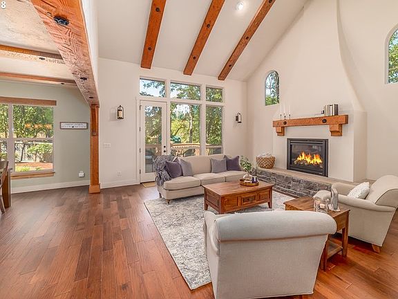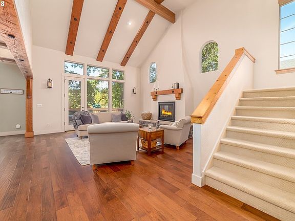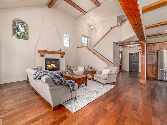 Beautiful custom home w/high end amenities throughout.Located in sought-after South Eugene.Engineered hardwood floors,high ceilings&open concept,wood exposed beams,gas FP, granite counters,gourmet kitchen,Italian "Bertazzoni" Range,soft close cabinets & drawers,luxury mstr bath w/jetted tub&heated tile floors,loft office w/ built-ins,oversized garage w/ built in storage&shop space, gas h/u for BBQ.Quiet setting near Ridgeline trail.
