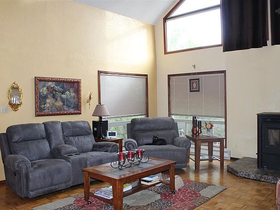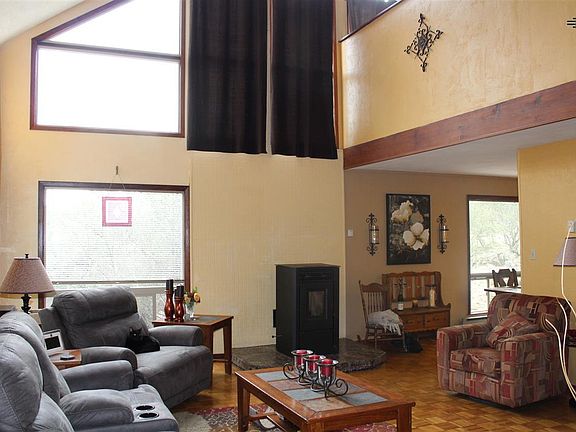 PRIVACY, SECLUSION AND AWESOME VIEWS! Just minutes from town, tucked away in the trees is this well maintained 4 bedroom, 2 bath home which boasts amazing long distance views! Enjoy the seclusion and privacy of the yard amidst the pines. Sunlight flows through the south facing windows bringing the outside in for your enjoyment with passive solar benefit. Living area has pellet stove and beautiful staircase leading you to the 3 bedrooms and one bath upstairs. One bedroom, bath, laundry, kitchen and dining are downstairs. Beautiful kitchen features double oven, plenty of cabinets and efficiency for the cook! Dining area adjoins kitchen and living area. Beautiful wood parquet floors! Lots of storage throughout the home as well as outside storage shed. This home is a steal at under $200,000! If you want that "Little Cabin In the Woods" this is more than you could dream for!