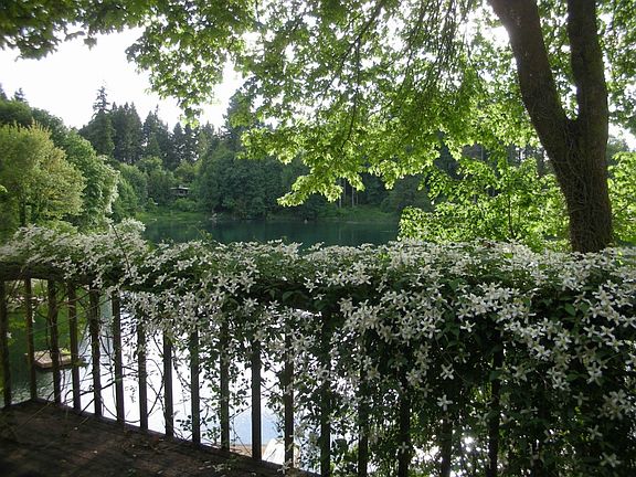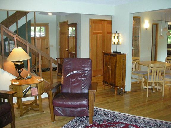One of a kind 2,676sqft lakefront home with 2 bed/2 full baths up plus room for guests with bath down. Beautiful hardwood floors in formal living and dining rooms, kitchen and family room. Stunning updated kitchen with quartz countertops, stainless appliances and maple cabinets with tons of storage. Easy lake access to dock with updated stairs and terraces. Features include beautiful wood trim and doors, security sys, heat pump, 2 decks, great parking. Loaded with Charm and ready for move-in.