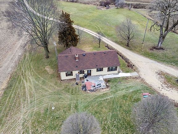 Value is in the 3 good sized bedroom, 2 bath home with full basement and 5 plus beautiful acres for raising horses, dogs or farm animals. Bonus, there are three large out buildings. 1- 48 x 72, 1 - There is a creek that has running water all year long. Home needs some serious TLC. Roof was new 2018, There is no water damage from roof. Ceilings and walls are all in great shape. There are built in cabinets in the generous Living/Dining room. Newer water heater and brand New Furnace 2021.House structure is sound and well built. There is natural gas to the home so no need for propane. The Kitchen and Bathrooms need to be rehabbed. House needs new flooring but subfloor is sound. The large full basement with lots of storage needs a good scrub. Potential for a beautiful home to be updated to your taste. There are two Pole Buildings approximately 48x72 and 24x50; the garage is approximately 24x50 and a Corn Bin/Storage approximately 24' diameter.