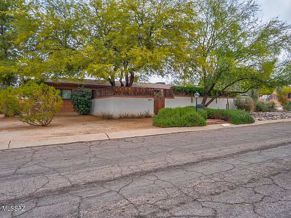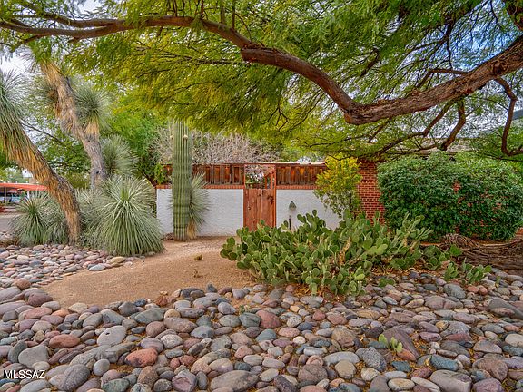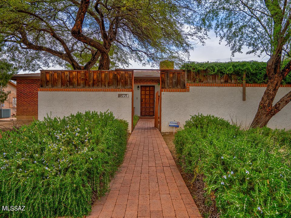 Have you been searching for a retro home with unique touches of elegance? This 4 bed, 2 bath home offers charming mid-century brick construction on a large corner lot in Tucson's central east side neighborhood of Highland Vista Cinco Via. Surrounded by mature landscaping, this home exudes a timeless appeal and multiple places to find your zin. Its unique layout wraps around a private courtyard, the perfect serene spot for your morning workouts or entertaining friends in the evening. An attached studio with a separate courtyard entrance offers versatility - ideal as an art studio with a sink or convert it to an extra bedroom. Conveniently located close to Highland Vista Park, shopping, and entertainment venues, this home also boasts a newer roof, adding to its appeal. If you're seeking a home dripping with retro charm, look no further. This home on Holmes is waiting to captivate you with its blend of classic style and an escape into your private garden.