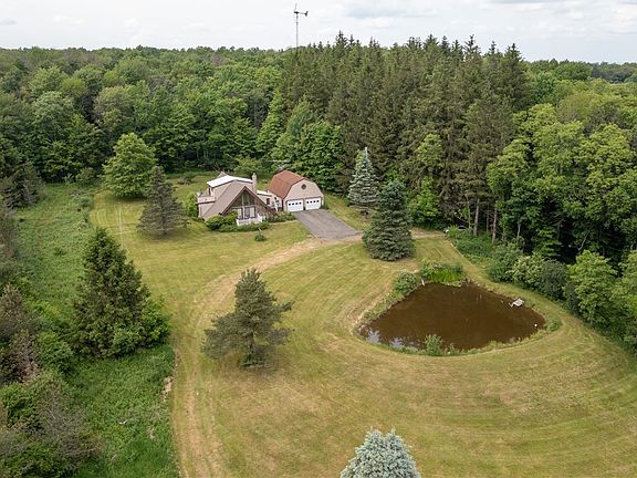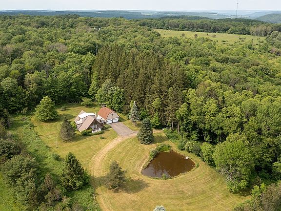 An ABSOLUTELY Darling, 3BR, 2 Full Bath A-Frame Home~ Tucked Away, right off of Elm Valley Road/County Road 12~in-between Alfred & Wellsville ~ w/15.10 Acres included! The kitchen is cozy, with a full Appliance package (New Refrigerator), lots of cupboard space and a cute eat-in area! A nice feature in this property is a First Floor Full Bath, a Laundry (New Washer/Dryer) PLUS 2 spacious First Floor BR! All the conveniences of First Floor Living! The MAIN ATTRACTION IS the GORGEOUS View you'll see when you enter the Great Room! Windows from Main floor all the way up to the ceiling! It's the MONEY SHOT!! Absolutely INCREDIBLE!!! You can enjoy the view from your Living room OR step out onto the Front deck for a closer look & admire the Grounds, the Pond and the AMAZING Valley!! This home also features a 2nd level, with an open concept Bonus room/Loft, a 3rd bedroom and a full bath! Roof approximately 5 years, Hot Water tank 2021, Multi-zoned Thermal off-peak Electric AND a Gorgeous Stone Wall with a Wood Burning Stove!! The HUGE 2 car detached garage has a second Level with tons of storage! Delayed Negotiations until 6/23@5pm. HURRY!!!!