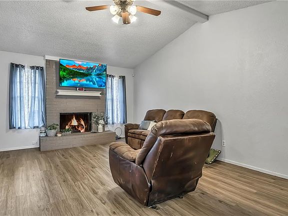 This 3 bed, 2 bathroom home with almost 1300 sq ft (mol) is ready for its new owners. Living room features laminate flooring, fresh paint and fireplace. The kitchen updates include refinished cabinets, new sink and plumbing, lights, fan, counter tops, hardware and much more. Heater recently replaced with a 10 year warranty, newer AC unit. Updated canned lighting in bathroom. Alarm system with sensors on all doors to outside and almost all windows.