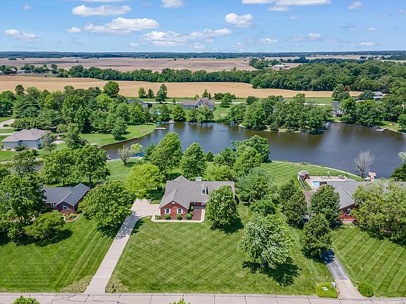One Owner Brick Ranch on Cherry Wood Lake in Wildwood Lake Estates, Smithton, IL. Generous sized rooms throughout this beautiful well-maintained home on 1.6-acre lot. Impressive vault ceilings with display shelfs in Living room, Dining room, Kitchen and Master bedroom. Large kitchen with center island, stainless steel appliances, pantry, breakfast room with access to the covered deck. Master bedroom has a walk-in closet and a double closet. Master bath features a double bowl vanity, tub, shower and tile floor. The finished walk out basement is an open concept recreation/family room & office, exercise room, wine closet, bonus room, full bath and workshop with garage door. There is a pergola at the patio. Fish off the dock or kayak in the lake. Boat with10 hp or less motors. No jet skis. Updates include Roof 2023, HVAC 2015, Water Heater 2019, Main floor engineered hardwood and ceramic tile 12/2022, Refrigerator and dishwasher 2022, Stove 2016. Call to schedule your showing!