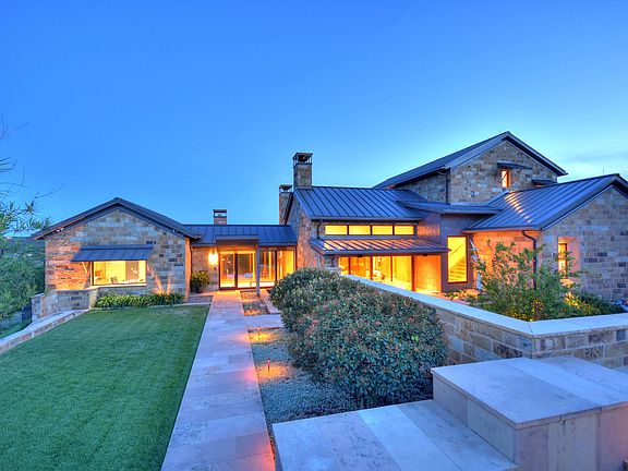 Known as "The Bridge Home", this architectural beauty is the epitome of quality and functionality, and the owner spared no expense at every turn. Cascading waterfalls and dramatic water features provide the perfect backdrop for any gathering along with beautiful hill country views enjoyed from the private outdoor oasis. Large sliding glass doors blend the indoors with the outdoors. The design and build of the home took 5 years, and the owners have over $5.3mm into it. Meticulous stone work, a 1,200 bottle wine room, a fully equipped theatre, an exercise room, a walk-in ventilated safe, and a 1,200 sqft heated/cooled workshop that can easily be turned into additional bedrooms, a full apartment, a huge "rec" room, a car enthusiast's room or even a golf simulator room are just some of the unique features that abound. The 24/7 manned and gated community of Spanish Oaks is home to a top notch private golf course, a fish camp, hike-and-bike trails, a community pool, and cottages that your visiting guests can rent. Exemplary Lake Travis ISD. 5 minutes to the Hill Country Galleria with Whole Foods, a theatre and a plethora of dining and shopping options. Downtown Austin and the airport are only about 20 minutes away.