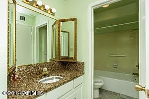 Charming 2 bedroom 1.75 bath in prestigious 'Seville Park' in Villa Monterey near Old Town Scottsdale. Close to Fashion Square 5th Avenue shopping art galleries fine dining Giants/Diamondbacks Spring training Chaparral Park the Canal and close to the 101. Wooden shutters throughout on this light and bright unit which is steps from the pool. Excellent storgage in the back patio. All on one level. New roof coating 9/14. Age restrictions - see document tabs