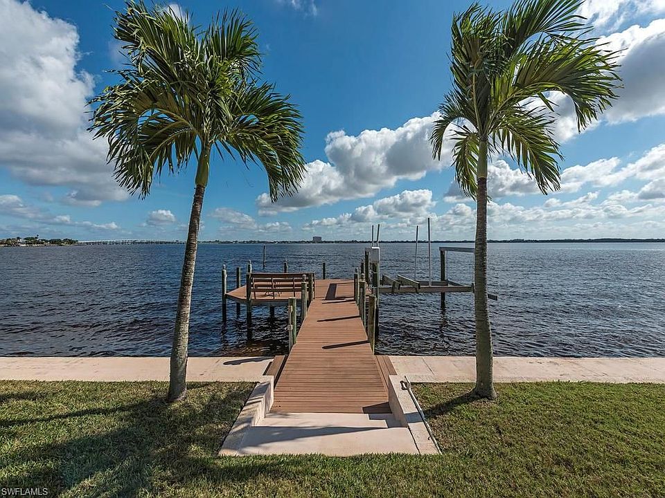 H.11447 - Enjoy magnificent riverfront living from this impressive beauty with unrestricted direct access to the Gulf of Mexico. Offering full panoramic views from this almost half acre lot which allows for the feel of complete privacy. This homes is perfect for boaters with its dock w/8000lb lift where you boat can be stored. Then if you have more toys then the dock can handle the extra tall 888 sq ft garage is perfect boats, toys, or even an RV! Inside you will find a beautifully kept home just waiting for it's new owners fun new touches. Enjoy your kitchen in the center of the home where family and entertaining will be sure made easier as others gather near. Once ready to dine, you will have your choice of a nook in the kitchen, formal dining or outdoors on the extensive lanai. The master boasts a walk in shower and a jetted tub for relaxing after long hard days. The great room has pocket sliding doors that open all the way up to the huge lanai offering a large paved pool deck with electric heated pool.
