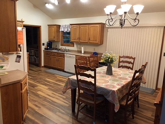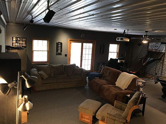 Gorgeous hilltop ranch that sits on 5 1/2 acres next to a 1 acre stocked pond. Amish made Oak Cabinetry adorns the kitchen with walk-in Pantry. Newer laminate wood look flooring. Cabinets in Bath and laundry are also Amish built. Many rooms have been freshly painted. Cathedral ceiling in kitchen and living room area. Exposed wood beams match the cabinetry, and add character to this home. Open Kitchen/Dining Area. Full walk-out basement, with family room, ceilings in basement are finished off with metal, for a distinctive look. There is another room in the basement that is currently being used as a spare bedroom. Full bath downstairs. Deck off kitchen, covered front porch. 30x60 pole barn with 3 bays, water, electric, and wood burning stove.