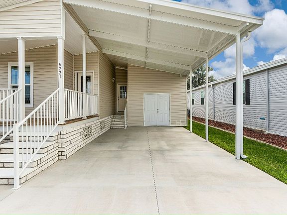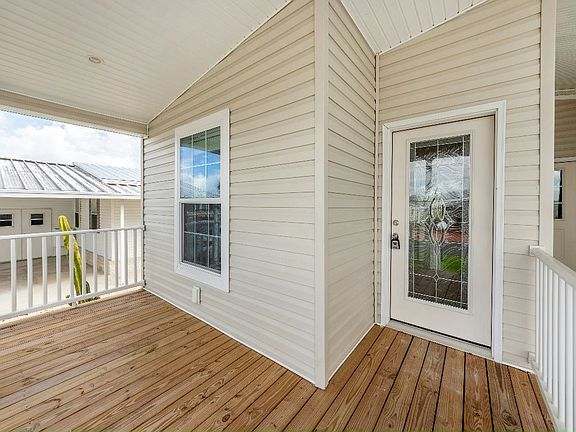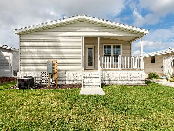 55+ age qualified community. Brand New Contemporary 2020 Skyline Madison with 3 bedrooms, 2 full bathrooms and Large Great Room will surely WOW you. Pulling into the 2-car carport you will notice room for a golf cart as well as the attached locked storage. This home is complemented by a front and rear porch with perfect views of the Florida sunrises and sunsets. Entering this beautiful home and you'll immediately notice the expansive vaulted ceilings all with white crown molding accents. Includes a very desirable Open Concept starting with a beautiful kitchen with solid wood white cabinets with soft close drawers and brushed nickel pulls and knobs. A large 3 level pantry closet offers plenty of storage. Whirlpool kitchen appliances are included. The granite-like countertops offer an abundance of space to include a breakfast bar great for entertaining. All flooring is a solid surface natural wood-like surface. The kitchen leads to the dining room with brushed nickel lighting then flows into the open living area with views out to the rear deck. The master bedroom can accommodate large furniture and includes a large walk-in closet with ample space and storage. The master bath has dual sinks with granite-like countertops and white cabinets. A large linen closet offers additional space which is located next to the walk-in shower. The second full bath is located next to the double door laundry with storage cabinets. Call today to schedule a private tour and learn how to make