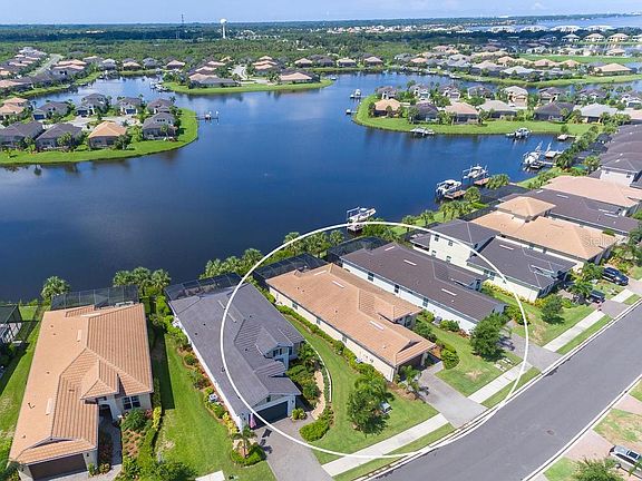 Do you LOVE boating?This lot is considered DOCKABLE w/ ARC approval. Canoe & Kayak with direct access to the Manatee River or Gulf of Mexico. This stunning waterfront San Remo model has upgrades galore. Plank tile flooring through-out the home. Decorator lights and fans complement the smart contemporary decor. White kitchen cabinetry, under cabinet lighting, decorator pattern backsplash, stainless appliances, enormous quartz low bar countertop that you will enjoy while entertaining your guests. Decorator touches include custom shelving in den/office and bedrooms areas, plantation shutters, tray ceilings, an abundance of crown molding, floating shelves in the great room and vertical pleated honeycomb shades for the sliding glass door. Step out to the pool area enclosed in a "no see um screen". Privacy shades are on both sides of the screened lanai and can be lowered as desired. Dine out with your gourmet outdoor kitchen featuring a pizza oven, grill, refrigerator, sink and outdoor TV. This luxury kitchen has all weather resistant polymer cabinets with plenty of storage. Inside and outside..... this home is impeccable, luxurious and modern. Maintenance free living in a resort style community with marina, tennis, dog park, playground, fitness center, nature trails and more. The Manatee River is just minutes away. Life at Tidewater is without question the PINNACLE of WATERFRONT LIVING!!
