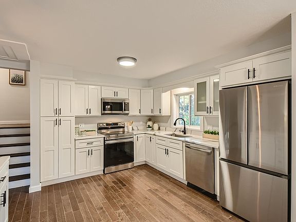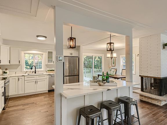 Beautiful home with brand new flooring. Updated kitchen with Quartz countertops and stainless steel appliances. Newly updated bathrooms. Wood burning fireplaces on the main and lower levels. Newer roof and recently painted siding.