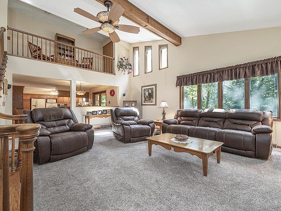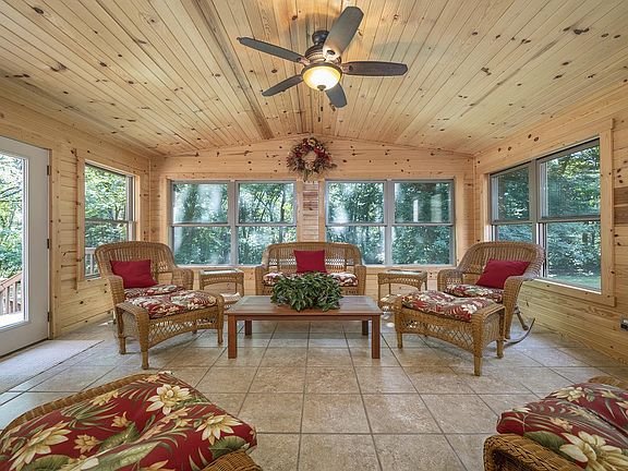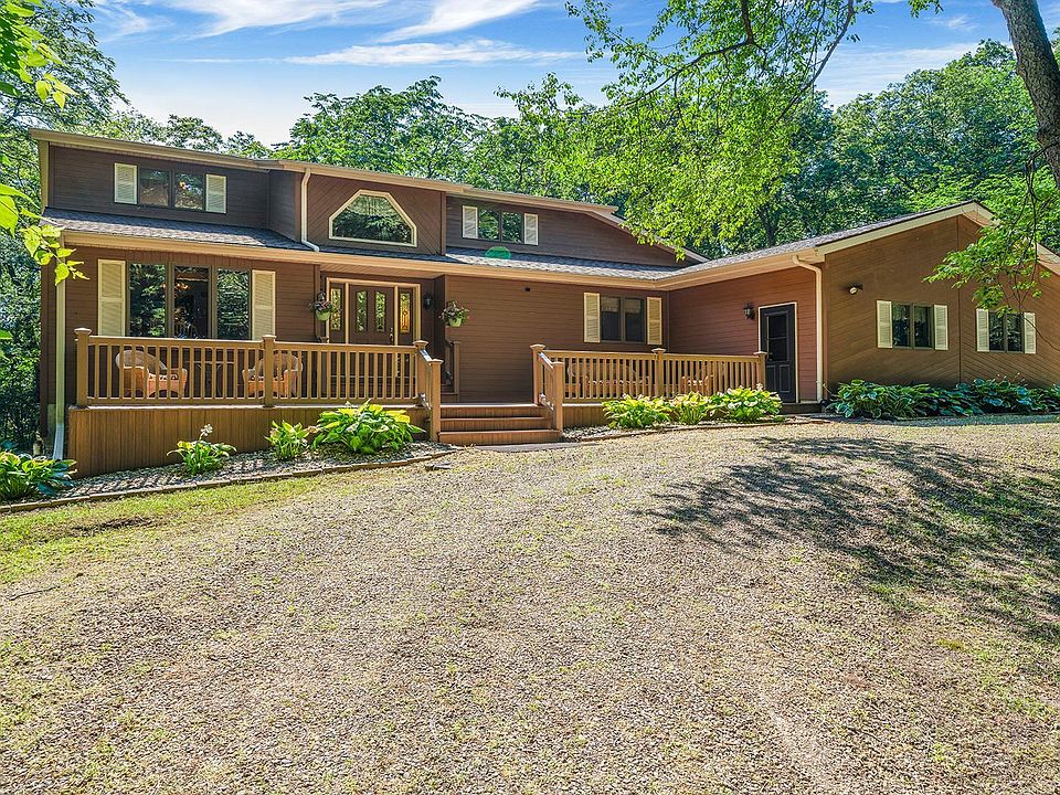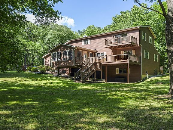 WOODED ESCAPE! This custom built; one owner home could be yours! Situated on 5.25 private & wooded acres and built with 2x6 construction, you will fall in love with this property located on picturesque Edgewood Road. With 3 bedrooms and 2.5 bathrooms and nearly 3,000 square feet of living space there is plenty of room inside and out. Main floor features formal dining room, office and updated kitchen open to the living room with two story ceilings. Kitchen has GE profile appliances, quartz countertops and loads of cabinets! Upstairs you will find the grand master suite with its own en suite bath & private deck. Two sets of stairs lead to the walk out lower level is finished with 2 bedrooms, full bathroom, potential 4th bedroom, workshop and family room. The homeowners favorite place to spend their time is the 3 season room that overlooks your own wooded wonderland. Many updates in the last few years including septic field, roof, furnace, central air, Sunroom, composite decking on the front and back of the home. This home boasts 3 stories of outdoor space! This is the one that you have been waiting for!