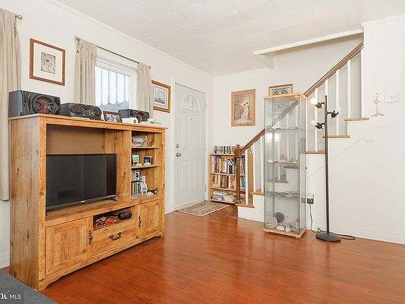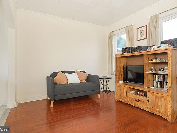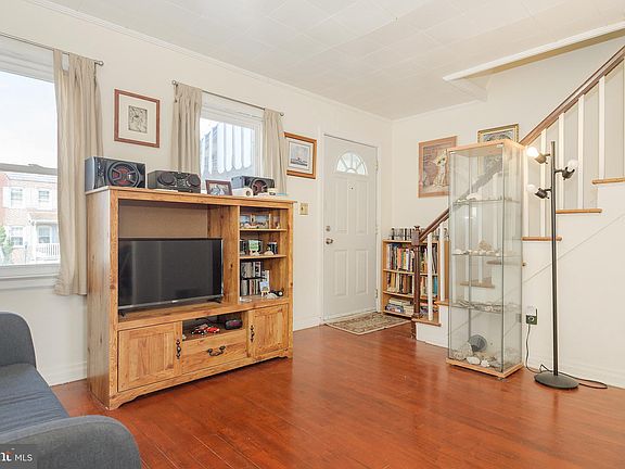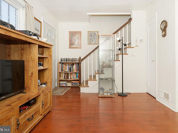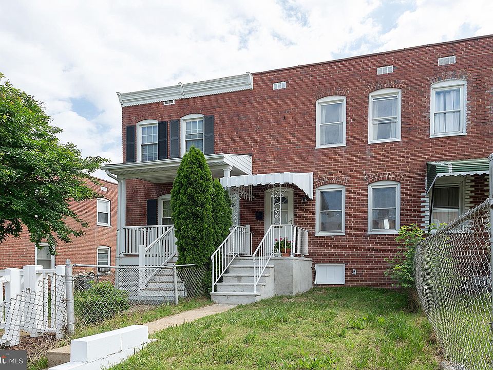 Great townhome with lots of potential! Solid brick 2 bedroom, 1 bath with separate dining, wood floors, newer kitchen cabinets. Unfinished basement with laundry. Gas cooking, CAC. Spacious deck off of dining room overlooks large wooded park with playground and basketball court. Off street parking pad in rear for 2 cars accessible via alleyway.