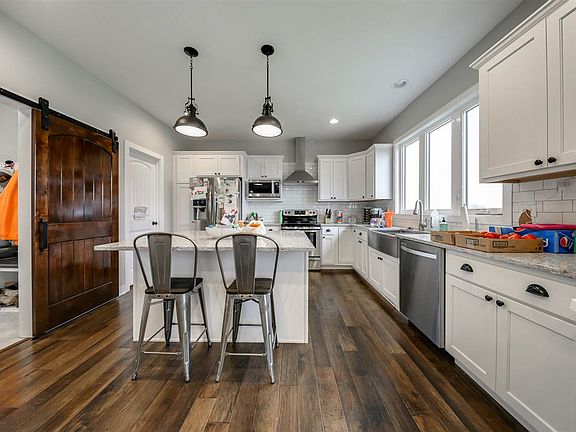 BEAUTIFULLY DESIGNED CUSTOM BUILT 2 YEAR OLD HOME WHERE FUNCTION AND STYLE COME TOGETHER. NO BACKYARD NEIGHBORS--JUST OPEN FIELD OF GRASS. OPEN & AIRY FLOOR PLAN WITH LARGE WINDOWS PROVIDING LOADS OF NATURAL LIGHT. KITCHEN INCLUDES GRANITE COUNTERTOPS WITH TILE BACKSPLASH, WHITE BIRCH CABINETS, CENTER ISLAND, SS APPLIANCES AND A WALK-IN PANTRY WITH BUILT-IN COUNTERTOP. ENGINEERED WOOD FLOORING IN ENTRY, KITCHEN AND DINING AREA. OWNER'S ENTRANCE HAS A DROP ZONE, CUBBIES AND A BARN DOOR.