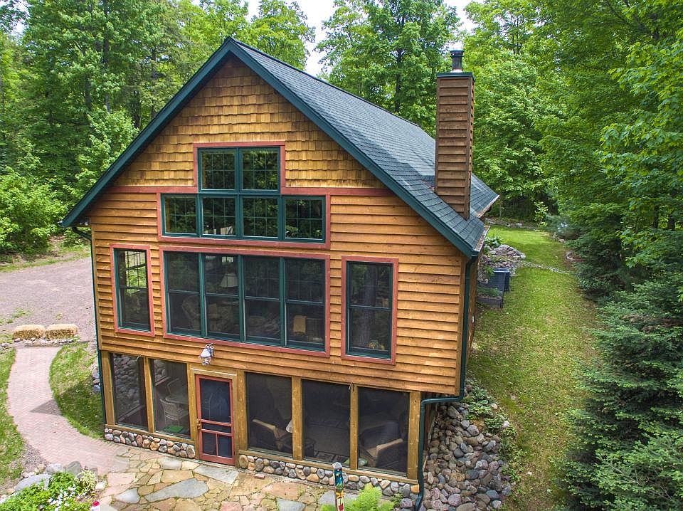 FIRST TIME ON THE MARKET: Incredible private retreat located just minutes from snowmobile, bike trails and downtown Manitowish Waters. Located on the main level is the Great room with impressive fieldstone wood burning stove, hickory wood floors, tongue and groove knotty pine ceiling, and granite countertops in kitchen and main bath, small den, master bedroom suite with built in desk, three season room with electric heat and a large walk in closet. There is a large loft bunk room and the 3rd bedroom is in the lower level along with a large family room, gas fireplace, queen size murphy bed, full bath with jetted tub, large cedar sauna to warm up in on cool nights. Large screen porch with brick floor, two large level flag stone patio's one with big fire pit, a natural gathering area for family & friends. Walking to the lake is a play area. Hiawatha lake is quiet private lake with no public access. There is a large 2 1/2 car detached garage with car port and a large wood shed.