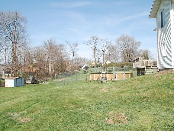 Here is your in town acreage with HUGE garage! Enter the home to a very open first floor, to the right is a large eating area with adjacent kitchen that was newly updated just a few years ago. Center island with extra seating and a pantry. Very open living room, a half bath and a smaller room used as office or bedroom but has no closet. Upstairs are 3 bedrooms, master having a full bath and hallway bath is a 3/4 bath with laundry hook-ups. Sliders off kitchen to large deck overlooking a fenced in above ground pool ready for use! The over sized 2 story garage can fit 3 cars plus a work space on ground level, upstairs is a open room/space as well as 2 rooms used as offices or whatever. Per the owners the north part of this lot could be divded off and sold or used to build another home on. Please confirm this with the city if this is your desired use. Subject to home of choice.
