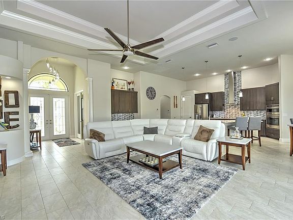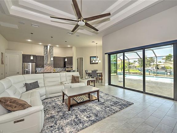 OPEN HOUSE FRIDAY 4/5 FROM 3pm-6pm AND SATURDAY 4/6 11am-2pm! MOTIVATED SELLER sold TURNKEY. This stunning 4 bed/3 bath pool home sits on a direct Gulf access canal lot, just minutes to the Caloosahatchee River and every boater's dream! This home boasts an open floor plan concept with an abundance of natural light. Upon entry, you will be met by 12ft ceilings leading you into the great room perfect for entertaining. A gourmet kitchen featuring stainless-steel appliances, quartz countertops, tiled backsplash and plenty of cabinet/counter space. Enjoy a meal on the oversized island, or a more formal sit down in its adjoining dining nook. This split floorplan gives the owners suite the ultimate privacy located on the opposite side of the kitchen. Tray ceilings, large separate closets, tiled walkthrough shower and oversized soaker tub for ultimate relaxation. 3 additional bedrooms are great size for guests and family, with plenty of closet space throughout the entire home! Outside you will enjoy your private oasis. The oversized lanai allows you to relax in the sun or shade with plenty of seating space. Complete with a heated saltwater pool, spa, and outdoor kitchen protected by electric storm shutters. It also has a 14k lb boatlift with captains walk. Don't miss your opportunity, schedule your own private tour today!