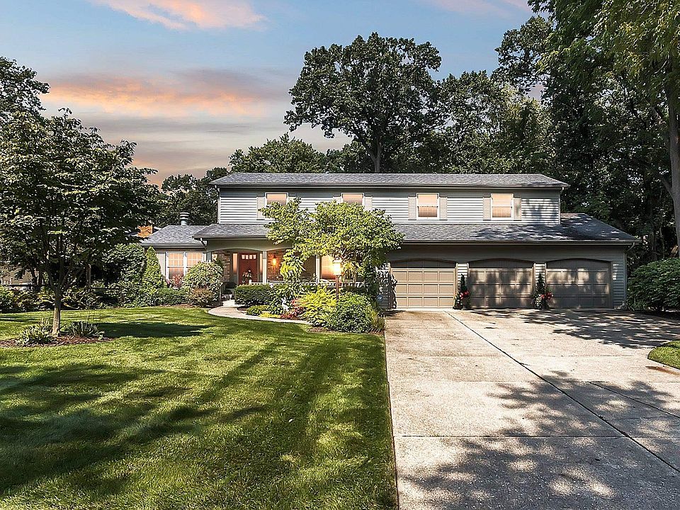 This home has so much to offer. The convenient location in Farmington Square is close to everything. The charming front porch beckons you to sit awhile and relax. As you enter the home, the staircase wraps around the foyer space. To the right is the formal dining room, and to the left is the formal parlor/office area with a fireplace. Step into the large family room with fireplace and you'll see the open plan with skylights and views of the private wooded yard. The huge deck will accommodate the largest party, and the lawn around around the deck is fenced. The updated kitchen with newer appliances has a large granite island with cook-top and second sink. You will love cooking and serving here as all the windows bring the outdoors in. The stained glass windows add some interest. Note the pantry and convenient back hallway to the large laundry room, half bath and three car garage entrance. Note the bump out for extra space in the garage. Upstairs are four bedrooms and two full baths, both updated. The master suite bath is huge with walk-in shower, loads of closet space and dressing area. The partial basement has a finished area and also storage space. Furnace and A/C new in 2021. Water heater new in 2020, garage doors new in 2019 HOA fee includes membership to the pool and tennis courts. Take a look and you will want to stay. https://site.windowstill.com/52222-Farmington-Square-Rd