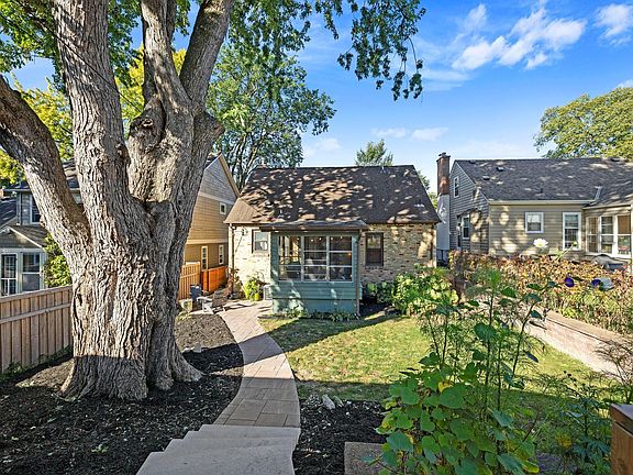 Charming brick bungalow nestled between Lake Nokomis and Minnehaha Parkway combines the perfect mix of original architectural details and modern updates. The light and bright living room featuring cove ceilings, wood-burning fireplace and a bay window flows into the dining room and kitchen. White cabinets, stainless steel appliances, quartz countertops with a peninsula create a great space for family time and entertaining. French doors lead you to a relaxing sunroom or head to the upper-level primary suite - HWF, high ceilings, a spacious bathroom and large walk-in closet create a relaxing oasis. The lower-level family room and flex space, currently used as a pottery studio, are perfect for work and play. Newer carpet, a new ½ bath and plenty of storage make this space functional and comfortable. Updates since 2022 include - wood privacy fence (May 2022) paver patio, walkway and front solid stone steps (May 2023) new water heater (Jan 2023) and new washer & dryer (Apr 2024). Move in and enjoy this beautiful and recently remodeled home walking distance to shops, restaurants, and parks!
