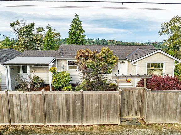 Nestled on Puget Ridge, this charming 1948 Seattle bungalow offers breathtaking views of the valley and Olympic mountains. Featuring 2 bedrooms and 2 bathrooms, this fantastic, renovated home sits on an expansive, fully-fenced, private 11,700 sqft lot with garden terraces and mature landscaping. Enjoy the outdoors with a large view deck and covered entertainment space. The updated kitchen boasts stainless appliances and quartz countertops, and the bathrooms have been tastefully remodeled. Fresh paint inside and out, new roof, oversized garage, and a lower-level primary suite, bath, laundry and office complete this gem. Conveniently located near four bus lines and freeway access, this home is a perfect blend of tranquility and accessibility.