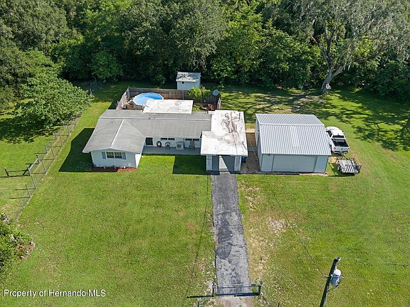 Looking for a GREAT HOME in a great LOCATION? Well, here it is. Just a quick FOUR minutes to Interstate 75, this beautifully maintained 2 bedroom, 1 bath, POOL home sits on .78 acre with a 25 X 30 GARAGE, a carport, and a BLOCK shed. The carport is attached to a large LAUNDRY/STORAGE room and provides easy rainy-day access to the laundry and home. Once inside, you'll see a wonderfully designed open layout that boasts a large kitchen with WOOD cabinets and a newer stove, a living room, and a dining area. TILE and laminate floors are perfect for stress-free clean-up, and the 2 SPACIOUS bedrooms offer plenty of room for personal items. A METAL ROOF, NEWER WINDOWS, and NEW SPLIT UNIT AC (less than a year old) makes this lovely home perfect. That's not all! The above-ground POOL is just 5 years young and has a POOL PUMP that is less than a year old. This pool area is separately fenced for privacy and has a deck that makes a perfect outdoor entertainment space. Most areas of the home are freshly painted, and the owner is attentive to the yard maintenance and landscaping, as well. The fence is in great shape and has TWO LARGE gates that make for simple entries and exits. This home is a gem, but you must see it to understand. Call for an appointment today.