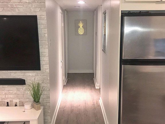 Freshly painted with a large bedroom with two large closets, full size restroom with large shower, and a kitchen/living room space. Kitchen has large counter space with breakfast bar. Full size oven with over the range microwave, and a full size stainless steal refrigerator. There is an AC/Heating unit and ceiling fans.
