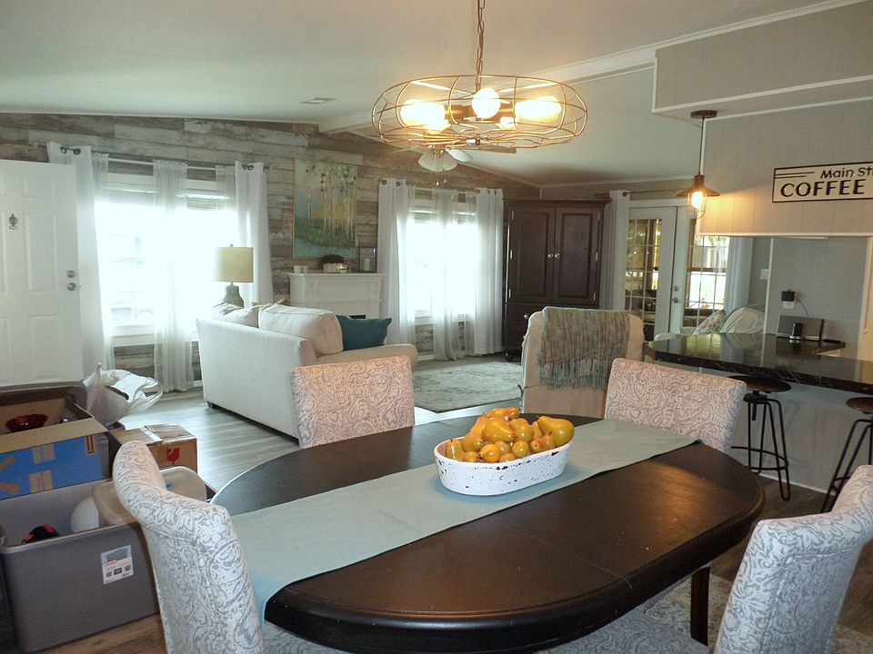 This fabulous home is offered fully, BEAUTIFULLY furnished as pictured including TV's, decor accents, area rugs, linens, knickkacks and even the outdoor furniture in the beautiful backyard oasis! All you need to provide is kitchenware! This popular floor plan allows 1352 sf plus 120 sf enclosed porch with A/C. Tons of storage space throughout the home including tons of cabinets plus deep food pantry in the kitchen, built-in hutches in dining room, living room and bookshelf closet, hall closet for cleaning supplies and a huge indoor laundry room wrapped in cabinet storage. The king size master has a deep walk-in clothes closet, built-in office nook and spacious en suite with walk-in shower, comfort height commode, medicine chest and linen closet. Queen sized guest room is currently designed to make the most loyal sports fan happy and guest bath is located directly across the hall with walk-in/roll-in tiled shower. Sellers state recent renovations include plywood sub floors, new laminate top flooring, **double pane tilt-in windows** attractive sound proof paneling accent walls in living, dining and master bedrooms. A large built-in desk/office area is located in the wide hallway and a separate laundry-utility room includes lots of extra cabinet storage. New hot water heater 2020, shingle roof 2011 and A/C 2010 serviced annually. Critterless screening around entire foundation. The shed has shelving and provides all the extra storage you need. The home is located on a perimeter lot with no back neighbors and a brand new sound barrier, attractive concrete wall is currently being installed to silence I75. This new wall provides all the peace and privacy you need to enjoy the beautiful furnished oasis (as picture including gas grill). This is a spectacular lot if you have dogs with a park pet limit at 3, no weight limit, non-aggressive breeds. What are you waiting for? Camelot Lakes is a gated, resort-style 55+ community where your monthly lot rent of $1140 includes water, sewer, trash/recycling curbside pickup, lawn maintenance, taxes and endless upscale amenities and organized activities. All shopping needs, great restaurants and entertainment are just minutes away via quiet back roads or easy I-75 access. Tired of having everything at your fingertips? Take a 7 mile drive to the beautiful quartz sand beaches of Siesta Key. Throw out a line, take a dip or enjoy an energizing walk along the shore. A never ending supply fresh air, sunshine and some of the nicest people you'll ever meet. Luxury living at the lowest cost in Sarasota!