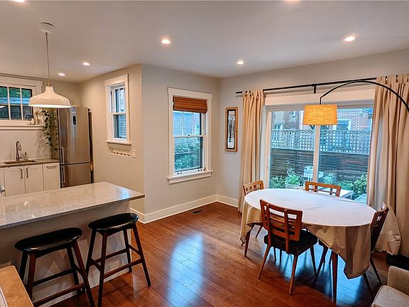 Great opportunity to live sustainably in Pittsburgh's Friendship neighborhood! 5223 Coral combines craftsman-style character with architect-designed updates & modern conveniences. High ceilings and wood floors throughout. The 1st fl features an open layout, remodeled kitchen, ample natural light, & access to two outdoor spaces. Sit on the secluded porch to enjoy panoramic views, or enjoy the privacy of the sunny, backyard patio, perfect for container gardening & hosting get-togethers. The 2nd fl offers three bedrooms and a full bath, and the 3rd fl hosts a finished captured 4th bedroom, perfect for an office or guest room. The partially-finished basement makes a great workshop or hobby space and has an updated half-bath. Other updates include a new roof, new furnace / AC, & solar panels guarantee low electric bills and constant power. The home's location can't be beat! A short walk will get you to E. Liberty, Bloomfield, and L’ville with grocery stores, restaurants, parks, and retail.