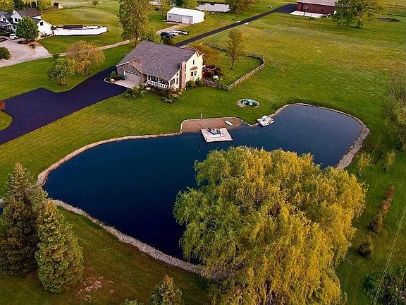 THIS HOME CHECKS ALL THE BOXES. NWACS, nearly 5 acres, Private Stocked Pond, Huge Pole Building, New energy efficient windows and doors, Geothermal, City Sewer-private well, New Roof, Master on Main w/ Connected Screened porch, Great outdoor spaces, Granite Countertops, FULL FIN Walk-Out BSMNT, Updated flooring and paint, invisible fence around entire property, Close to town and I-69 access. All updates have been done for you!